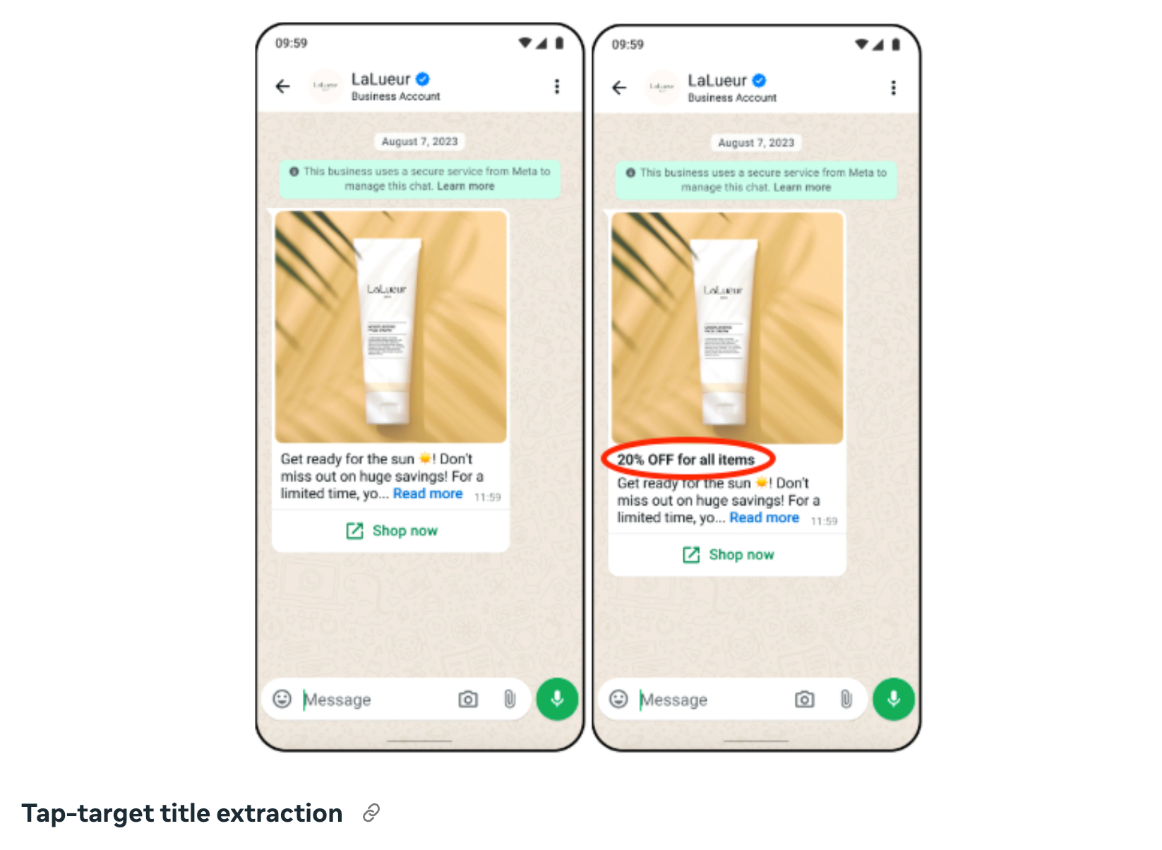 Meta recently expanded Automatic Creative Optimizations (ACO) and Smart Testing for the WhatsApp Marketing Messages API. These features automatically adjust message formatting and extract titles to improve performance.