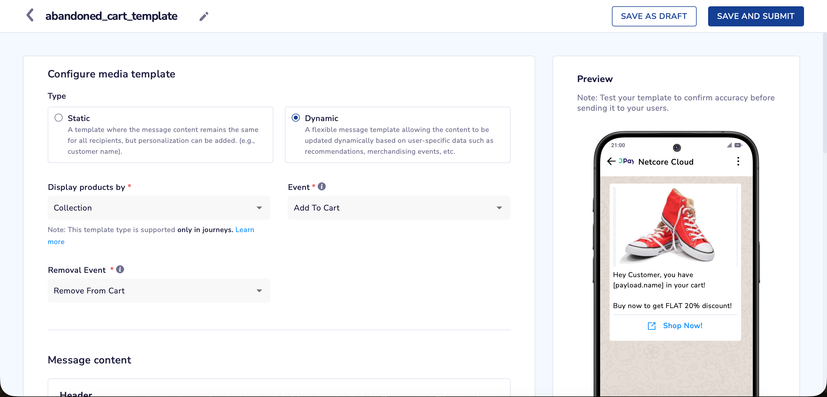 We’re excited to announce support for Product Collection templates in WhatsApp Journeys. With this enhancement, marketers can now send dynamic, personalized product messages on WhatsApp using rich media templates based on users’ most recent actions.